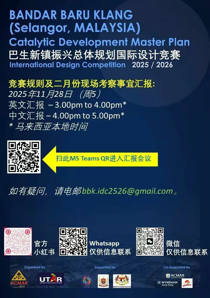 马来西亚“巴生新镇振兴总体规划国际设计竞赛 2025/2026”现已启动!诚邀全球建筑、规划、景观、工程等相关专业的学生,以创意与远见共同参与巴生新镇的焕新之旅。